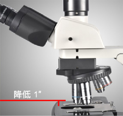 通过物镜转换器垫片可将载物台高度降低1″,以便轻松更换标本,同时保持舒适的姿势。