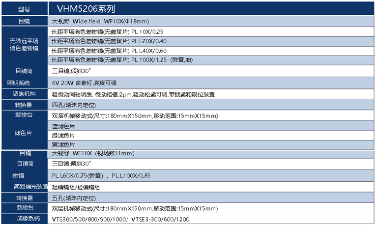 倒置金相显微镜VHM5206系列 照明系统采用柯勒照明方式,视场照明均匀,产品结构紧凑,操作方便舒适。适用于金相组织及表面形态的显微观察,是金属学、矿物学、精密工程学研究的理x仪器。金相显微镜主要用于鉴别和分析内部结构组织,为金属物理学研究金相的重要工具,本仪器选配的摄影装置,可拍摄进行图谱所需的整倍数照片,适用于厂矿企业、高等院校及科研部门。