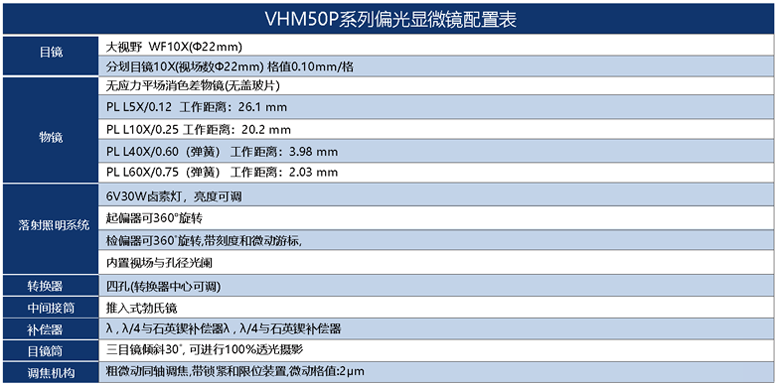 VHM50P透反射偏光显微镜是利用光的偏振特性对具有双折射性物质进行研究鉴定的必备仪器,可供广大用户进行单偏光观察,正交偏光观察,锥光观察。广泛应用于地质、化工、医辽、药品等领域的研究与检验,也可进行液态高分子材料,生物聚合物及液晶材料的晶相观察,是科研机构与高等院校进行研究与教学的理想仪器。