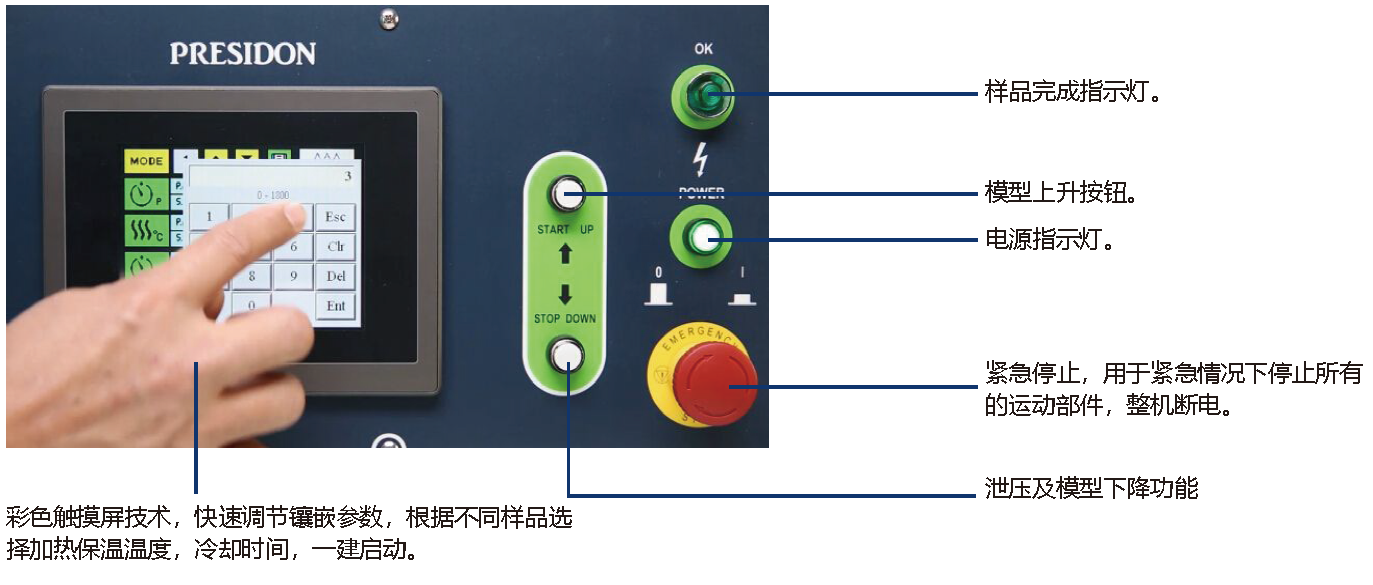 · 一键式全自动操作, 从加热, 加压, 保压到冷却全自动操作。