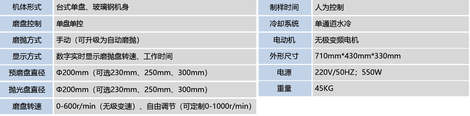 适用于对金相试样的粗磨、精磨、粗抛光至精抛光过程进行自动制样工厂、科研单位以及大专院校实验室的理x制样设备。