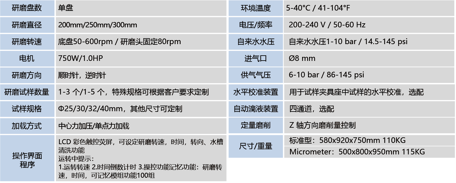 样品尺寸:20mm 25mm 30mm 32mm 40mm定量磨削