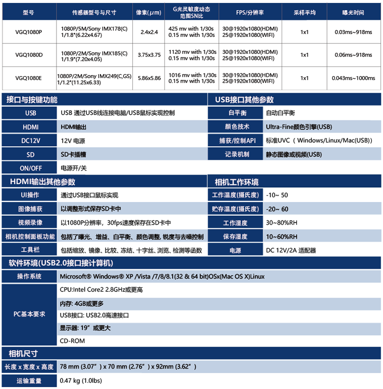 1.采用高灵敏度CMOS传感器的C接口相机;