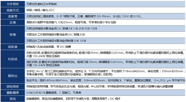 VMX12L 集成了明场、暗场、偏光、DIC 等多种观察功能。