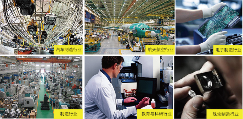 本机适用于汽车制造行业、航天航空行业、电子制造行业、制造行业、教育与科研行业。珠宝制造行业等其他领域。